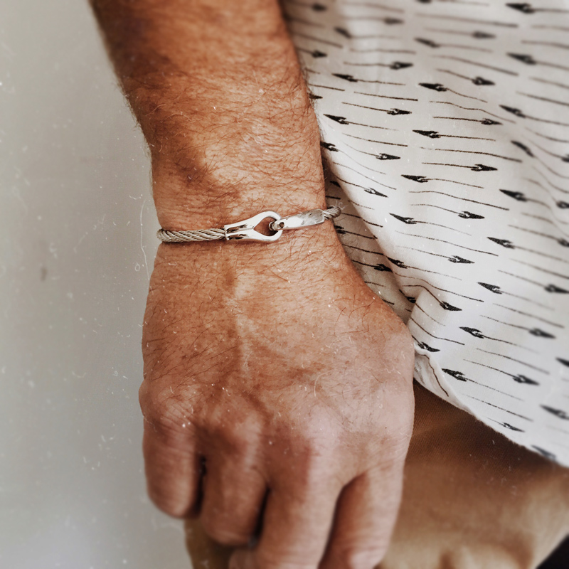 Bracelet câble homme en acier et menottes - LUCIEN